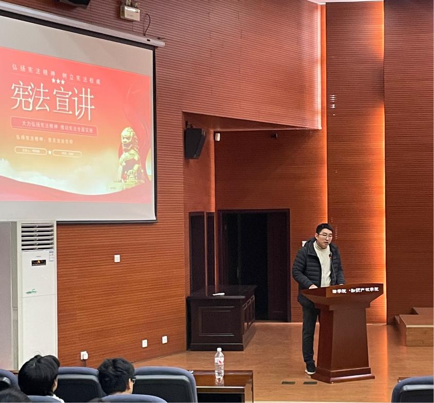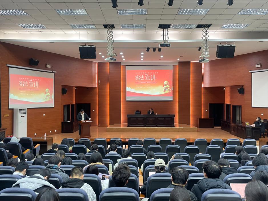 为有效提升公司员工的法律实践能力,落实公司教学实践周系列活动方案,2024年12月13日晚,公司2024-2025学年第一学期教学实践周系列活动预热活动在长安校区模拟法庭启动。长安区人民法院民事审判三庭副庭长何向阳受邀为院内120余名法员工带来一堂以宪法精神与老员工法律风险为主题的法律实践宣讲课,本次活动由mjm世界杯官网教师、2023级本科生班主任李国华博士主持。
