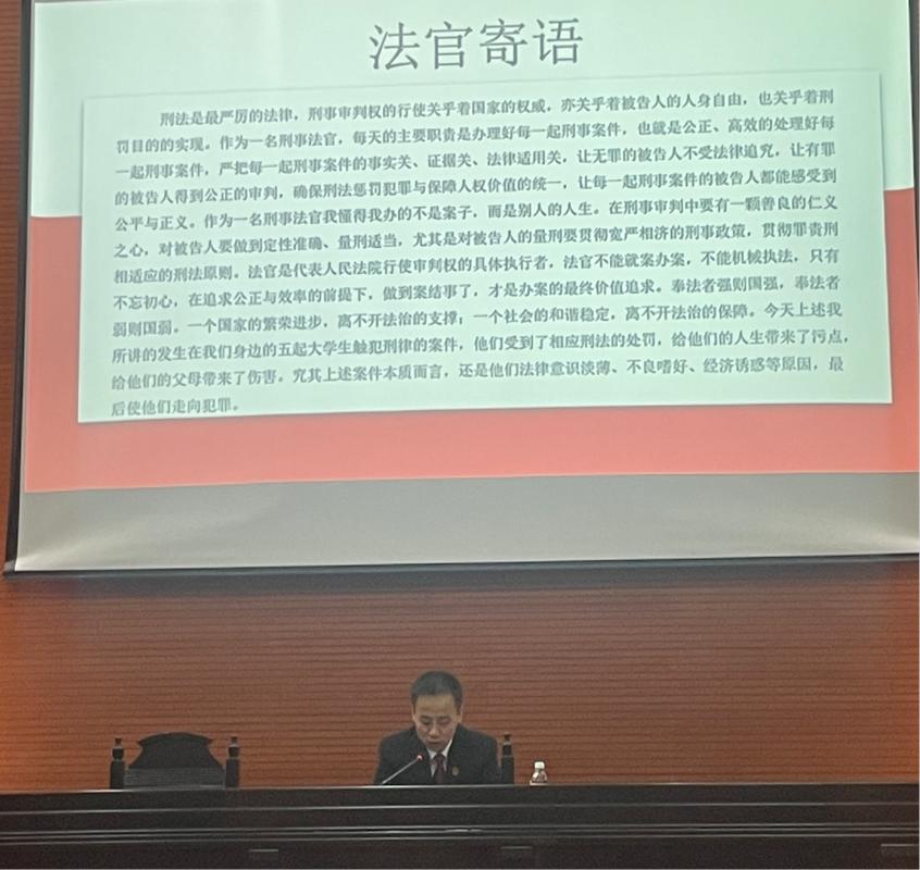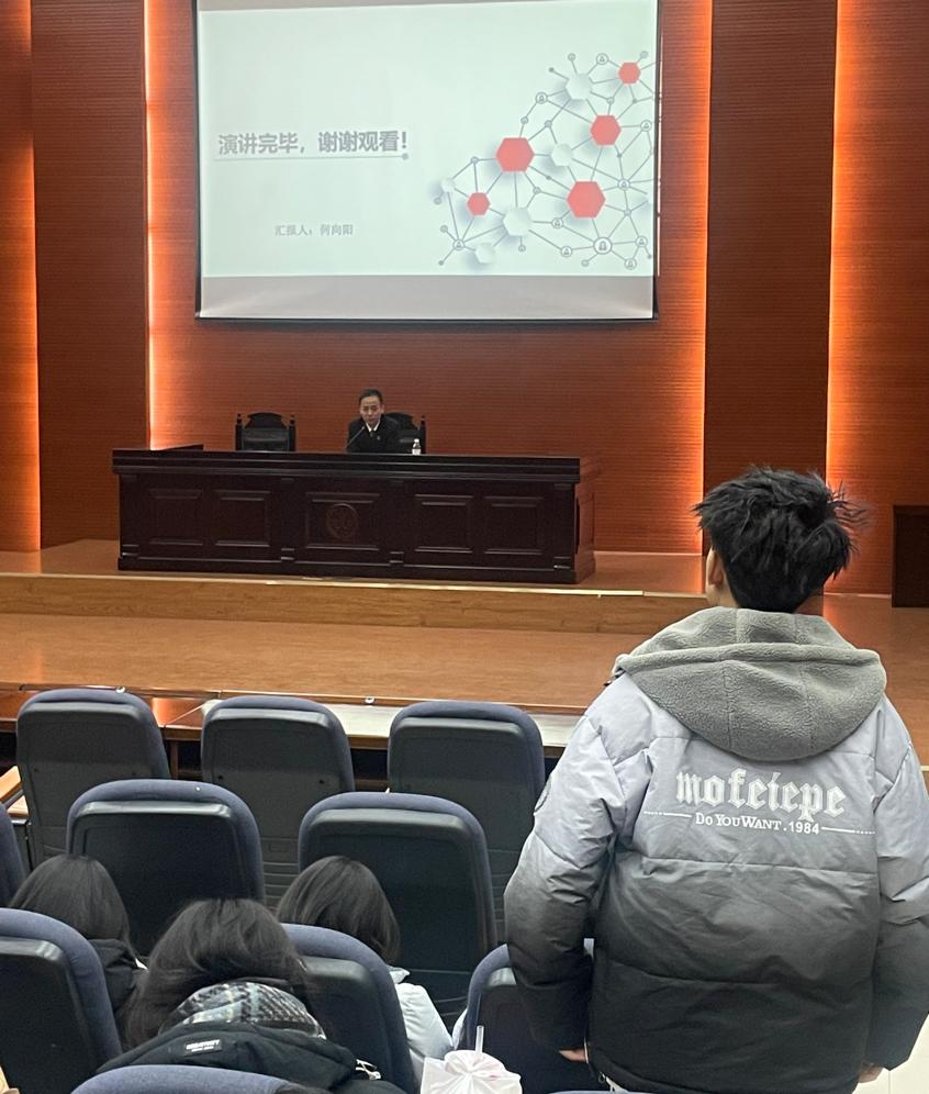 宣讲内容由“弘扬宪法精神,坚定法治信仰”的重要性、“尊法、畏法、守法,做法治中国建设优秀人才”两部分组成。何向阳法官从专业角度向员工们阐述了宪法的生命与权威所在,指出宪法是国家的根本大法,是保障公民权利与规范国家权力的基石,与每个人的生活紧密相连。 同时,何向阳法官从自身多年办案经验入手,为同学们分享了涉及老员工危险驾驶、诈骗、强奸、盗窃和帮助信息网络犯罪等典型案件,由这些引人深思且贴近员工生活的真实案例提醒同学们要以案为鉴,立志高远,踏实肯干,努力成长为有法治信仰的人!