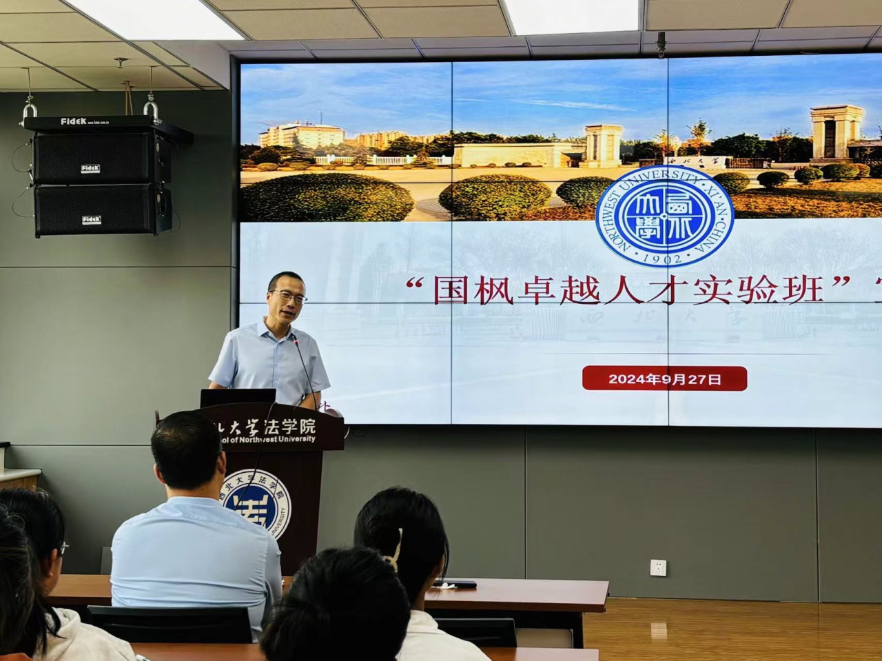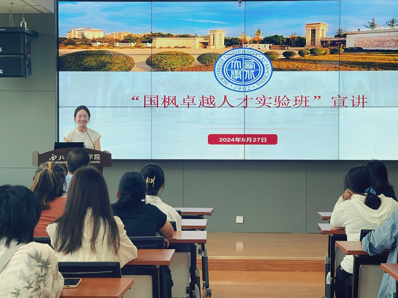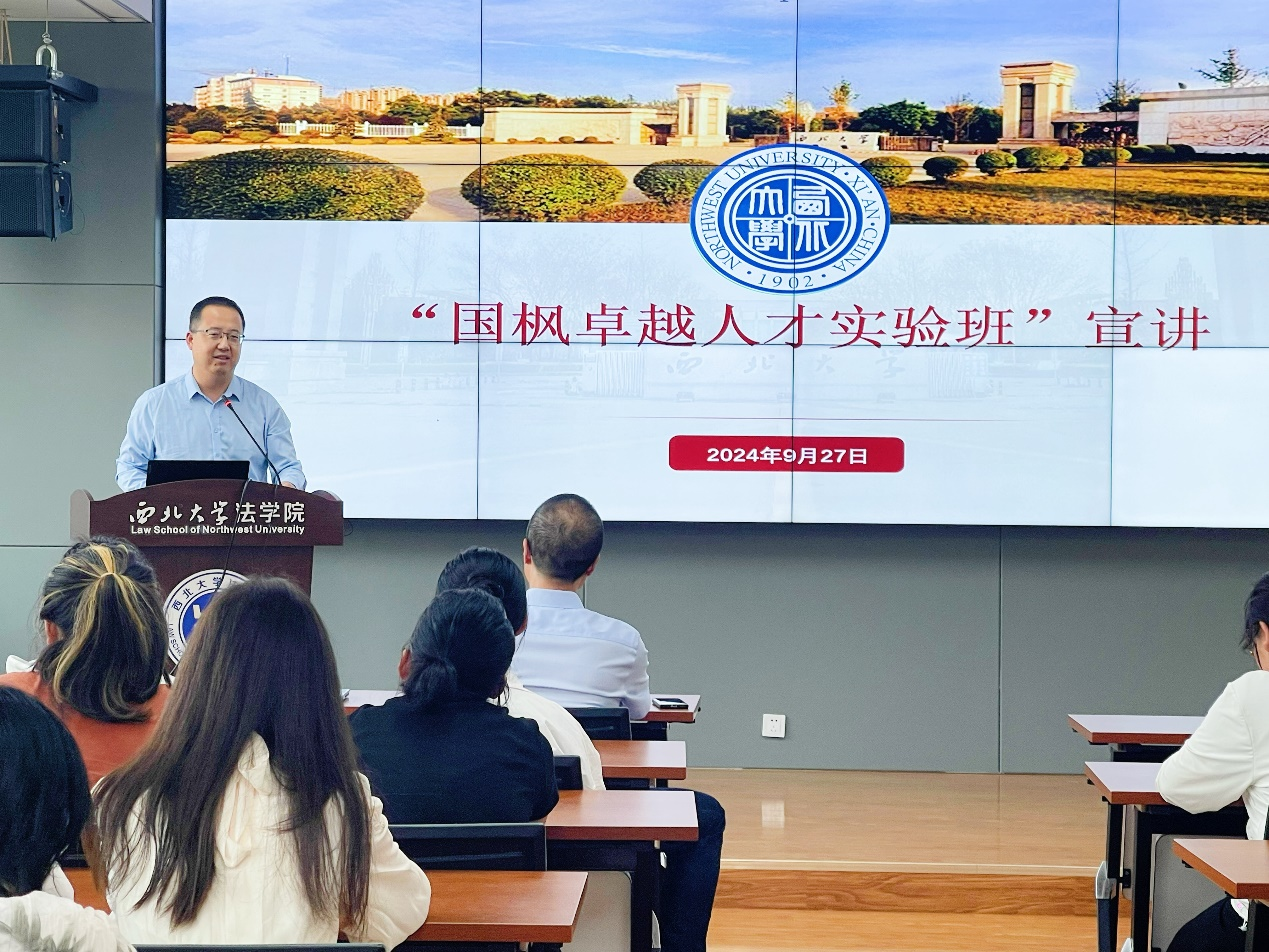 基于公司与国枫律师事务所达成的《关于合作开展卓越法治人才教育培养计划协议》,公司在2023级本科生中成立了首批“国枫卓越人才实验班”,并拟在2024级本科生中招收第二批实验班学员。2024年9月27日,公司进行第二届“国枫卓越人才实验班”宣讲活动,本次活动的主讲人为国枫律师事务所西安办公室合伙人王勇主任,公司参加本次活动的老师有经理王思锋、副经理崔玲玲和副教授卞辉,2023级实验班部分学员及2024级全体本科生参加了本次宣讲活动。
