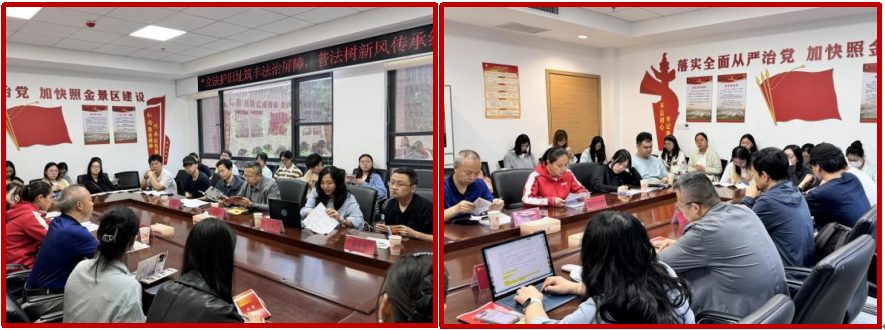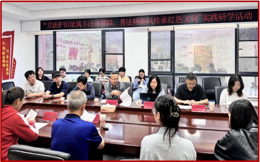 随后,研学团队和铜川市人大常委会法工委、照金景区管理委员会举行《条例》实施座谈会。《立法学》团队负责人代水平介绍了此次研学的目的,旨在通过实地考察,增强师生对地方性法规实施的直观感受,并特别说明团队根据《条例》内容精心编撰了顺口溜,便于人们识记和了解《条例》内容,与会人员对这一创新性法制宣传形式表示高度认可。铜川市人大常委会法工委办公室韩院主任介绍了《条例》的制定过程,并详细解读了重点内容及实施状况。照金革命旧址管理处宣教科负责人对创新宣传形式、分类保护措施、红色资源整合、修缮维护工作及下一步规划等方面的工作作了讲解和交流。。与会人员还就《条例》执行中的经费保障机制、基层管理体制协同等问题展开深入交流。