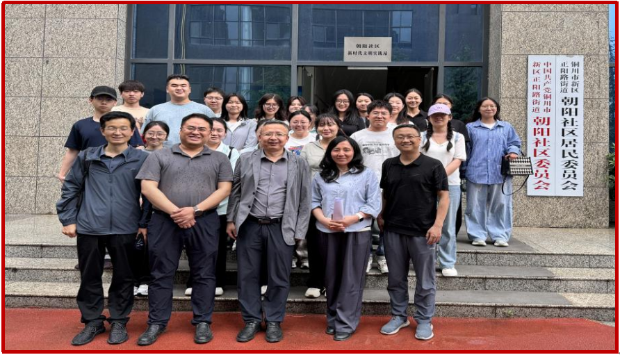当天下午,师生一行到铜川市耀州区正阳路街道朝阳社区委员会调研座谈。社区工作人员介绍了社区以党组织网格图为治理基础,构建了集群众办事、矛盾调解、入户宣传于一体的基层服务体系,推行“三心服务”机制(放心户、关心户、连心户),并分别针对青少年与中老年群体开展关爱活动及健康服务。在基层民主与法治建设中,社区通过立法意见征集、民主议事、法治讲座等方式开展普法宣传、提升社区居民法治意识。暖心服务站设置“家居便利贴心上门服务”“图书借阅”和“爱心交换”等便民项目,促进邻里互助。矛盾调解室创新“司法联动”模式,构建“预防—调解—化解”三级纠纷处理机制,实现矛盾就地解决。调研中,师生直观感受到了朝阳社区的精细化服务与规范化管理的生动实践。