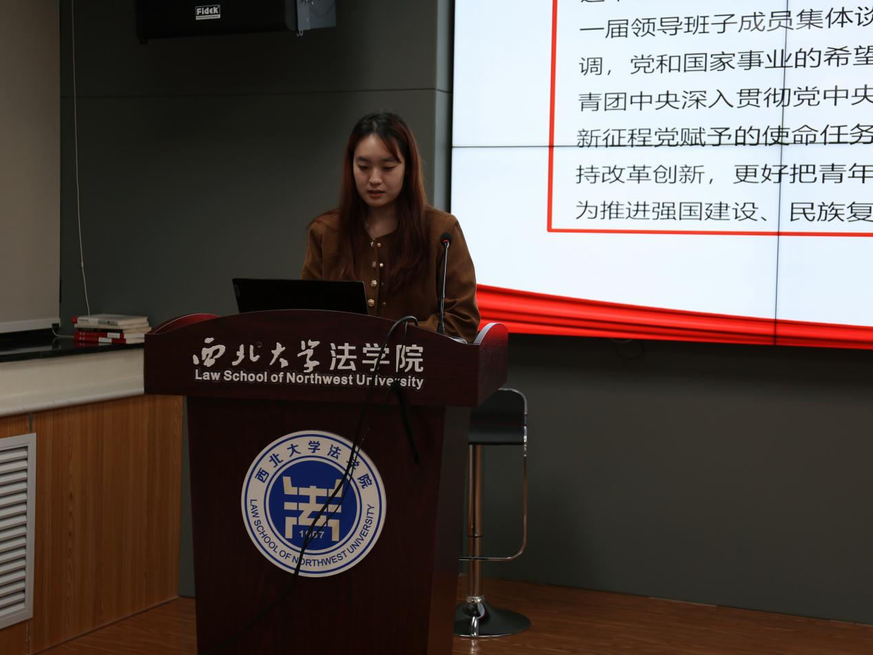 宣传部洪雅诗同学以贯彻落实习近平总书记讲话精神 争做优秀共青团员为主题,详细介绍了习近平总书记讲话内容所涉及的七个方面,带领同学们回顾了大会对新时代中国青年要求的使命担当,同时,她分享了三个关于共青团的小知识三会两制一课三减一节“12355青少年服务台
