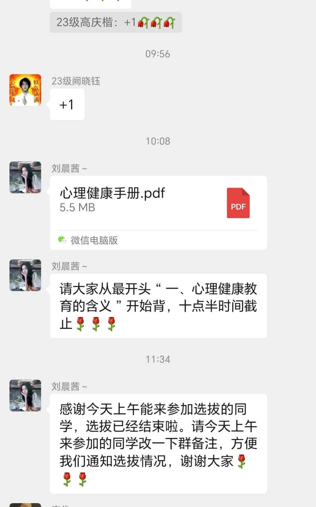2023年11月4日上午10时,公司组织开展心理知识竞赛校赛参赛选手的选拔,心协副会长刘晨茜和张少轩根据参赛选手的答题结果,最终确定佳雨、雷欣妍、薛雨涵三位同学代表公司参加美加墨世界杯官网第七届心理健康知识竞赛。