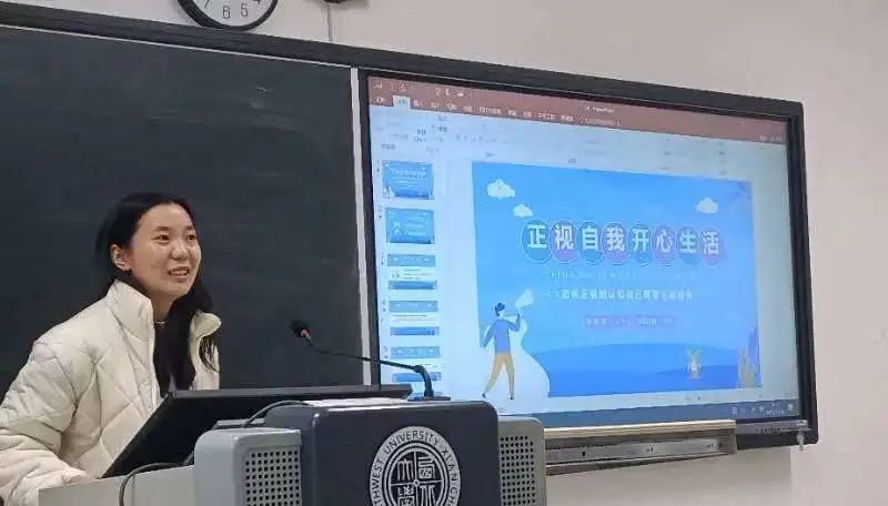 本次心理班会由心理委员赵艺菡主持,带领同学们探索情绪、认知自我,并有三位同学对自己的经历、经验进行了分享。对同学们的心理健康有很大的帮助,具有较强的知识性和互动性。