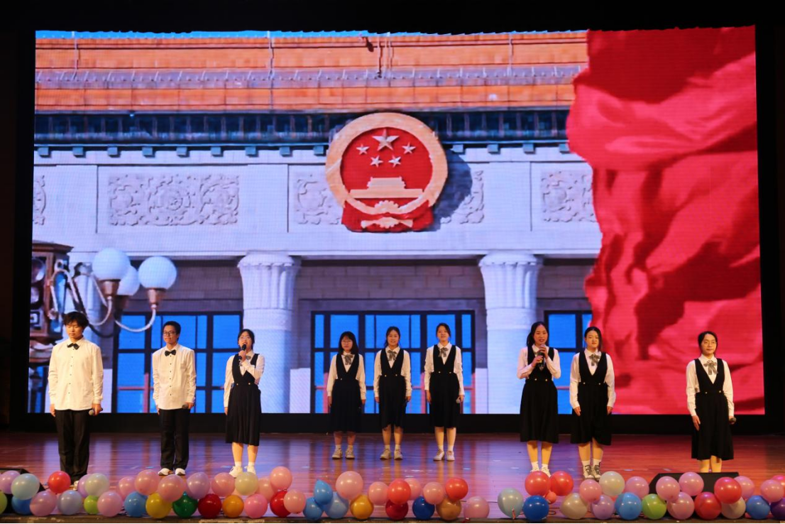 赓续血脉,奋楫争先,诗歌朗诵《我的祖国》道出这盛世下的自豪。时光微微,梦想摇曳,歌曲合唱《微微》放飞了青春的梦想。文雅之物,赠风雅之人,手语操《一路生花》在无声中将我们打动。恰同学少年,风华正茂。在饱含深情的歌声中心怀《少年》之理想,谱写《少年》之华章。