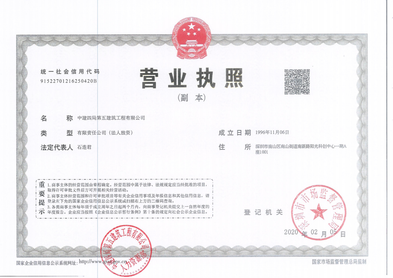 中建四局五公司是世界500强第13强中国建筑旗下中建四局大湾区建设主力总承包商;我们,致力于成为专业产品竞争力突出的一流建设企业;公司拥有公路工程施工总承包特级、建筑工程施工总承包壹级、工程设计公路行业甲级等16项专业资质,具备勘察设计、建筑施工、投资开发、运营管理“全产业链”一体化运作能力。企业下设广州、湛江、惠州、总承包、云南、基础设施建设、安装等7家分公司,拥有管理人员3000余人,业务遍布华南、西南等区域。
