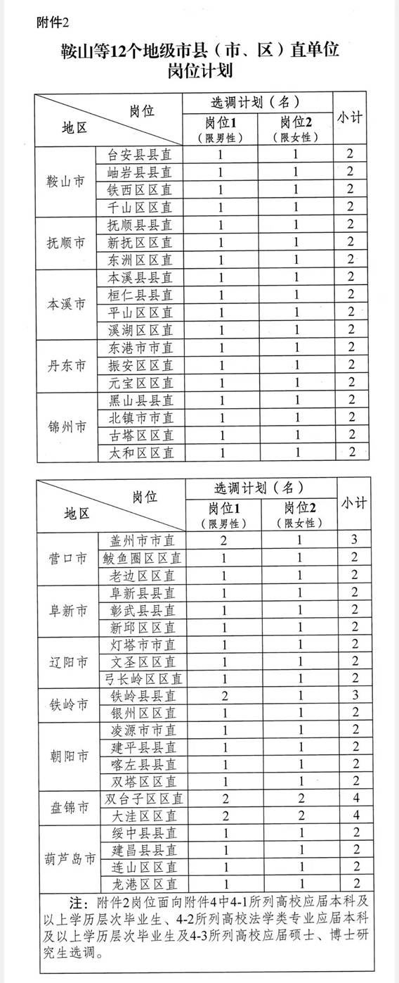 附件:1.沈阳市、大连市的县(市)直单位岗位和鞍山等12个地级市市直单位岗位计划