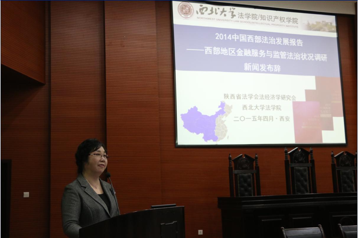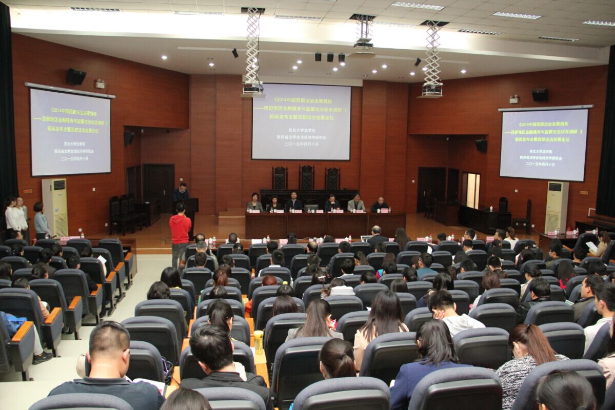 2015年4月10日下午,《中国西部法治发展报告(2014)——西部地区金融服务与监管法治状况调研》新闻发布会暨西部地区法治发展论坛在公司模拟法庭隆重召开。出席发布会的领导和嘉宾有公司副董事长高岭教授、西安市法制办主任白正谊、西安市政法委副书记赵夏、西安市中级人民法院副经理杜豫苏、西安市法学会专职副会长黄必方、西安市仲裁委员会副主任兼秘书长潘俊星、韩亚银行西安分行副行长王立文等。来自金融监管部门和金融机构的实务界人士、来自高校和研究机构的专家学者、来自省内外媒体和出版机构的记者编辑、陕西省法学会法经济学研究会的理事以及公司的研究生和本科生二百余人参加了此次新闻发布会和论坛。