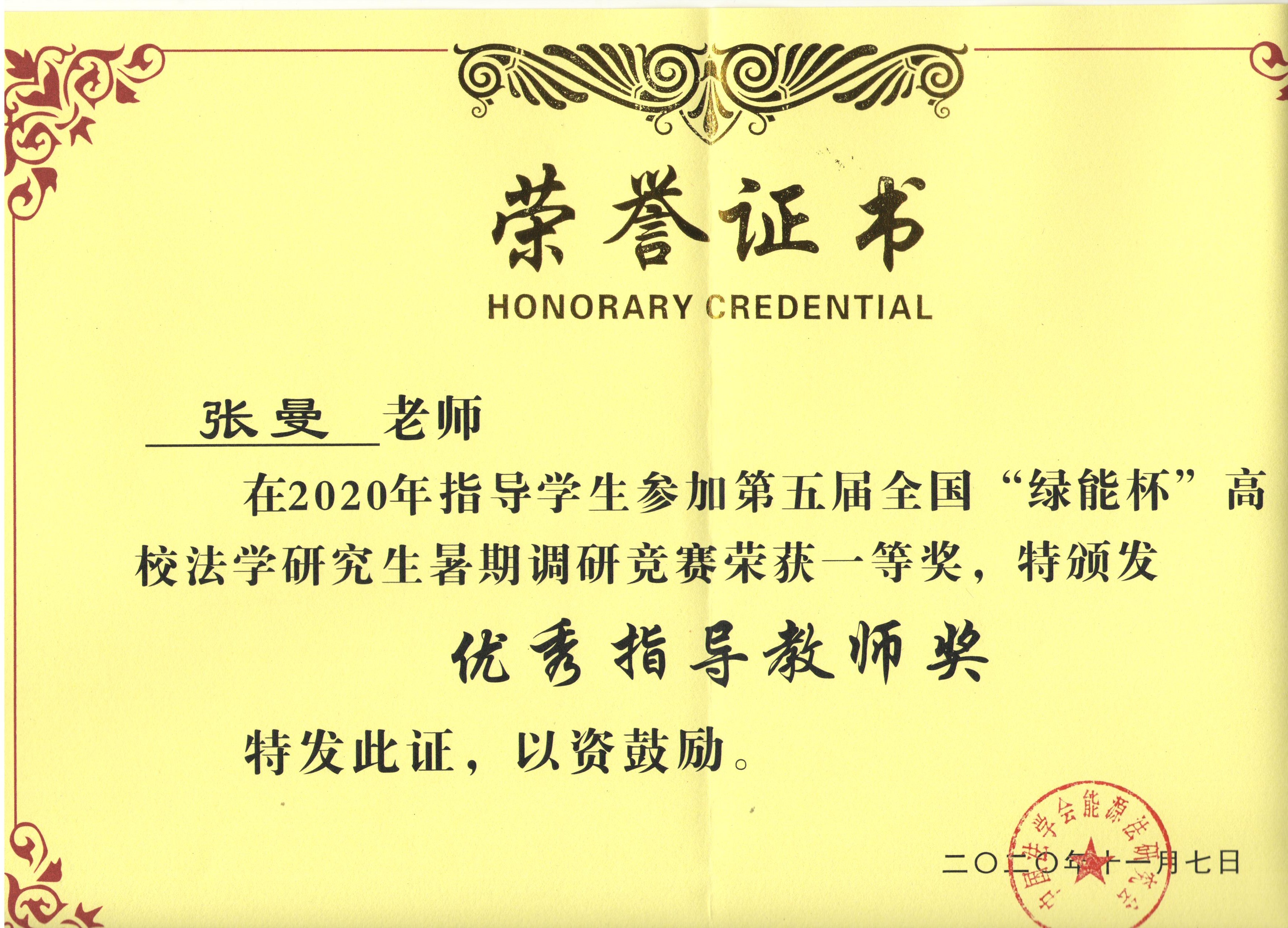 张曼副教授荣获优秀指导教师