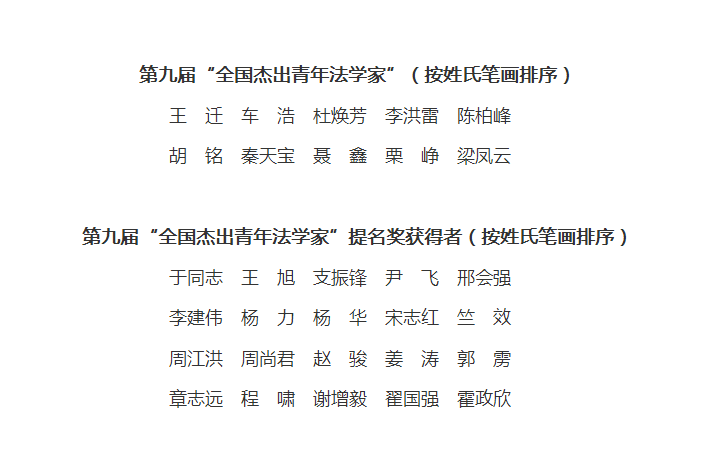 近日,中国法学会第九届“全国杰出青年法学家”评选委员会办公室正式公布了第九届“全国杰出青年法学家”和提名奖获得者名单。公司93级员工王迁教授、97级支振锋员工名列其中,分别荣获第九届“全国杰出青年法学家”和提名奖。