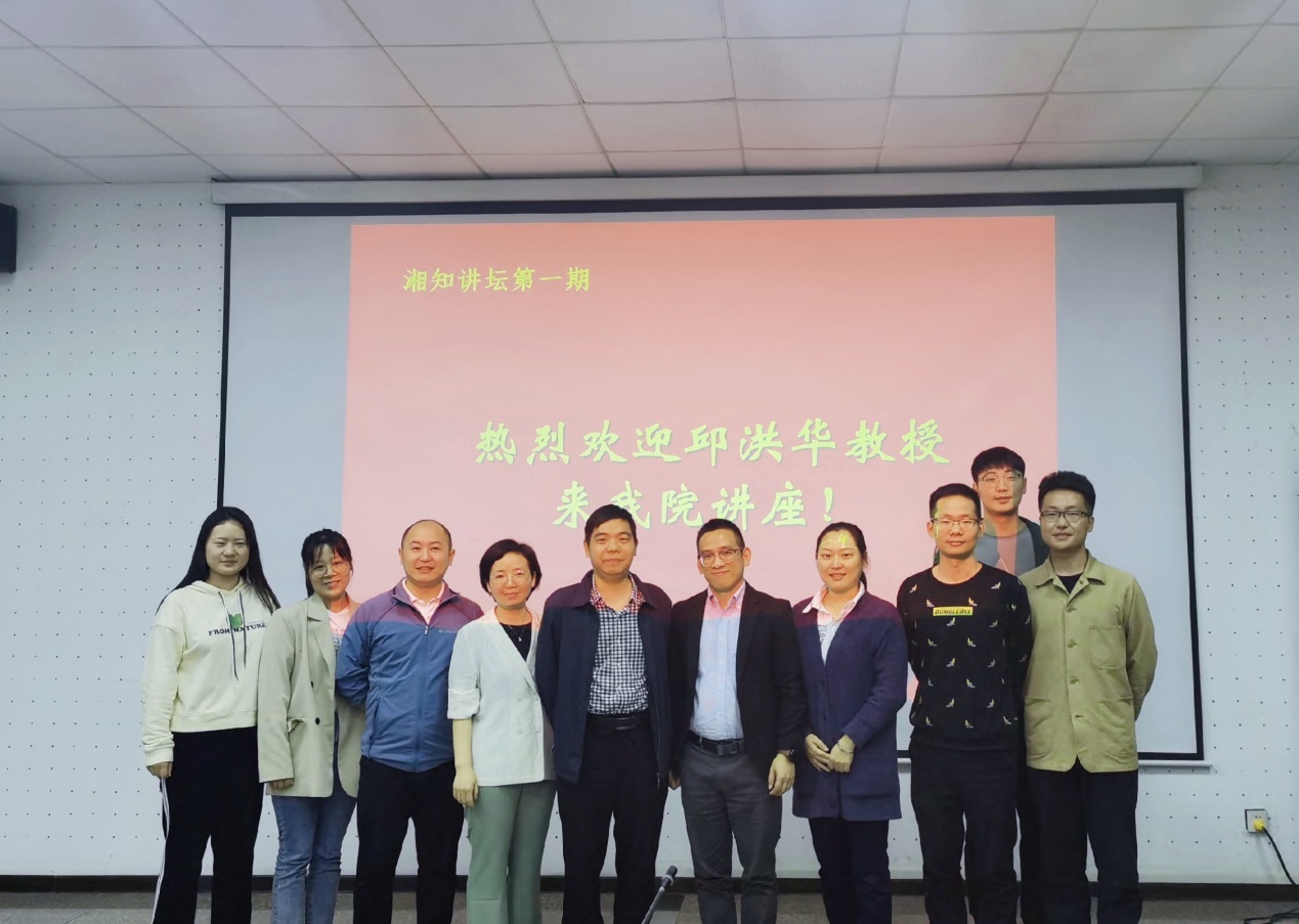 此外,邱洪华教授还受邀在湘潭大学知识产权公司以《专利视角下技术创新风险的识别》为题,主讲“湘知讲坛” 第一期,与湘潭大学知识产权公司的师生进行了学术上的交流。