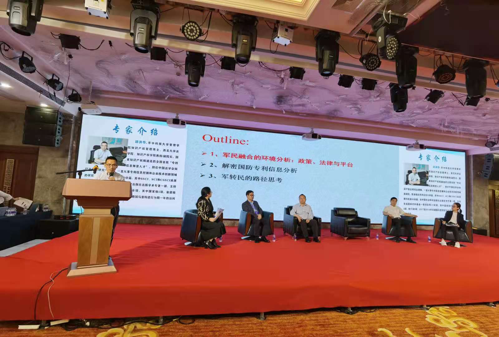 论坛由五场主题报告与两场圆桌论坛组成,拟探讨国防知识产权保护、国防知识产权建设、国防知识产权人才培养等议题。公司副经理邱洪华教授受邀参加圆桌论坛《国防知识产权保密制度建设》部分的研讨,并作为发言嘉宾作了《解密专利视角下军转民的现状与路径》的主题报告,就军民融合过程中的专利情报利用与平台建设等内容发表了自己的观点与意见。