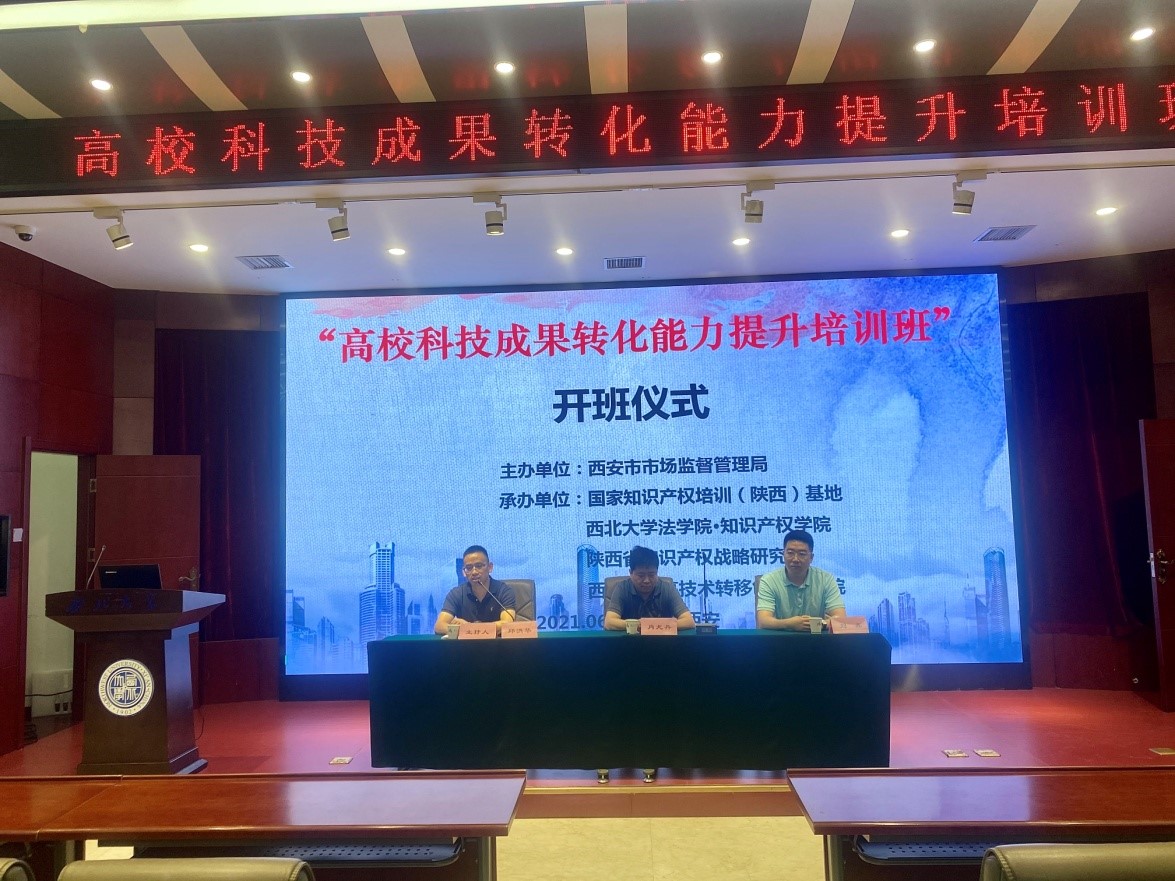 为贯彻党的十九大精神和省委、省政府决策部署,大力实施创新驱动发展战略,着力提升高校科技成果转化的能力和水平,促进高校科技成果与产业的深度融合,服务区域经济建设发展,2021年6月25日,由西安市市场监督管理局主办,陕西省教育厅科技处、陕西省知识产权战略研究院、国家知识产权培训(陕西)基地、美加墨世界杯官网知识产权公司和美加墨世界杯官网高技术转移创新研究院共同承办的“高校科技成果转化能力提升”培训班在美加墨世界杯官网太白校区顺利开班。本次培训班邀请到的授课专家有:中国科公司大学公共政策与管理公司肖尤丹教授、西南交通大学公共管理与政mjm世界杯官网刘鑫教授和mjm世界杯官网·知识产权公司副经理邱洪华教授。来自西安市各高校和部分长期致力于高校科技成果转化的中介服务机构共计70余人参加了培训。