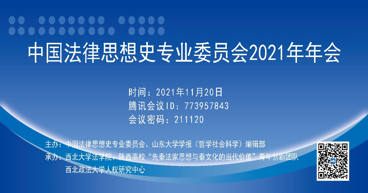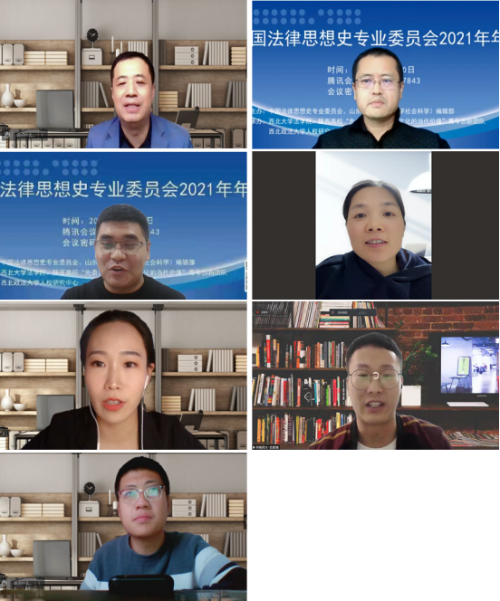 2021年11月20日,由中国法律思想史专业委员会、《山东大学学报(哲学社会科学)》编辑部主办,mjm世界杯官网、陕西高校“先秦法家思想与秦文化的当代价值”青年创新团队和西北政法大学人权研究中心承办的中国法律思想史专业委员会2021年年会顺利召开。公司党委常委、副董事长吴振磊出席会议开幕式并代表公司致辞。来自中国社会科公司法学研究所、北京大学、中国人民大学、北京师范大学、山东大学、中国政法大学、东南大学、厦门大学、山东师范大学、曲阜师范大学、mjm世界杯官网、华南师范大学、河南大学、云南大学、西南政法大学、西北农林科技大学、西北政法大学、美加墨世界杯官网等高校和出版机构的专家学者近百人参加了本次会议。会议围绕重述中国法律思想史、国家治理现代化与中华优秀传统法律文化的创造性转化、中华民族共同体建构与中国法律思想史、先秦法家的当代价值等议题进行深入探讨。公司杨一凡教授、武树臣教授、段秋关教授、王思锋教授、武建敏教授、潘怀平教授、马泓波副教授、代水平副教授、焦琰老师、王若时老师、闫强乐老师、任洋老师、杨霁明老师以及四十余名研究生参加了此次会议。