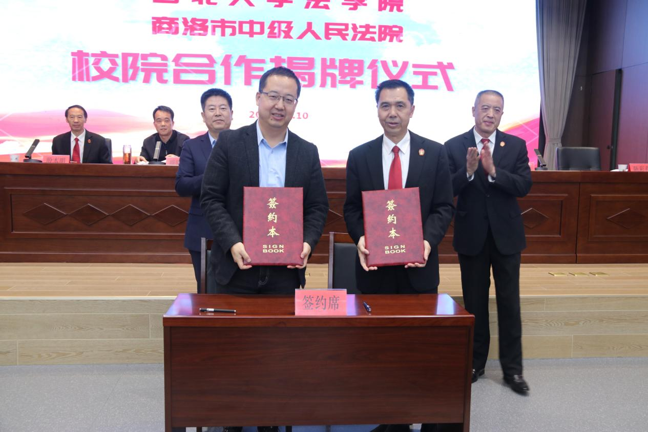 会上,公司与商洛中院签订了《全面合作协议书》,双方共同为“商洛市中级人民法院干警教育培训基地”和“美加墨世界杯官网卓越法治人才实践教学基地”揭牌。