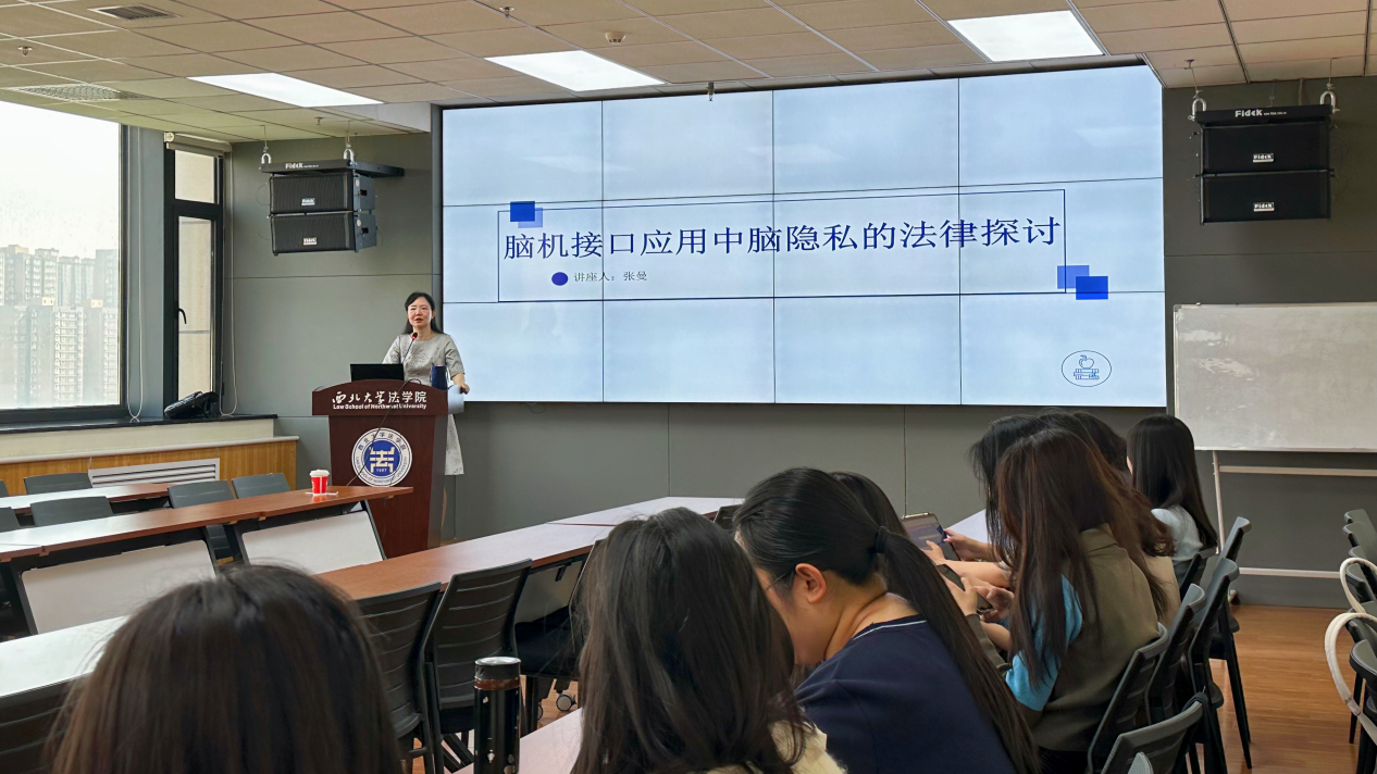 2024年4月25日上午,mjm世界杯官网·知识产权公司硕士研究生导师张曼副教授主讲“脑机接口应用中脑隐私的法律探讨”专题学术报告。这是国家知识产权培训(陕西)基地、陕西省知识产权战略研究院和mjm世界杯官网·知识产权公司共同主办的2024年“4·26知识产权宣传周”系列活动之一,共计60余人参加了本次学术报告。