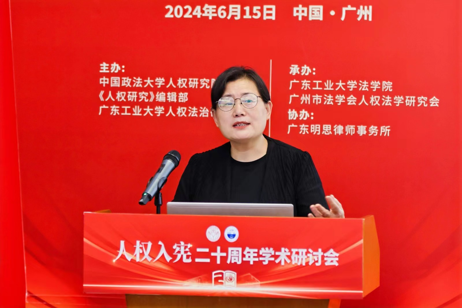 公司王秀梅教授在主旨发言第一单元就《人权入宪与人权话语体系构建》做了发言,她指出人权入宪促进了人权在中国的主流化暨国内人权话语体系建构,人权入宪为国际人权标准进入中国法律体系提供了解释上的规范接口,人权出场,成为理解和评价社会行为的话语和尺度,契合了对外交流中对人权话语的需要,促进了我国在国际人权事业中的交流和合作;从此以后中国深度参与全球人权治理,并贡献了中国智慧,促进了中国在国际交往中的人权话语体系建构;此外应继续加强建构并善用人权话语,即应当善于发现有关问题中的人权要素并使用之。