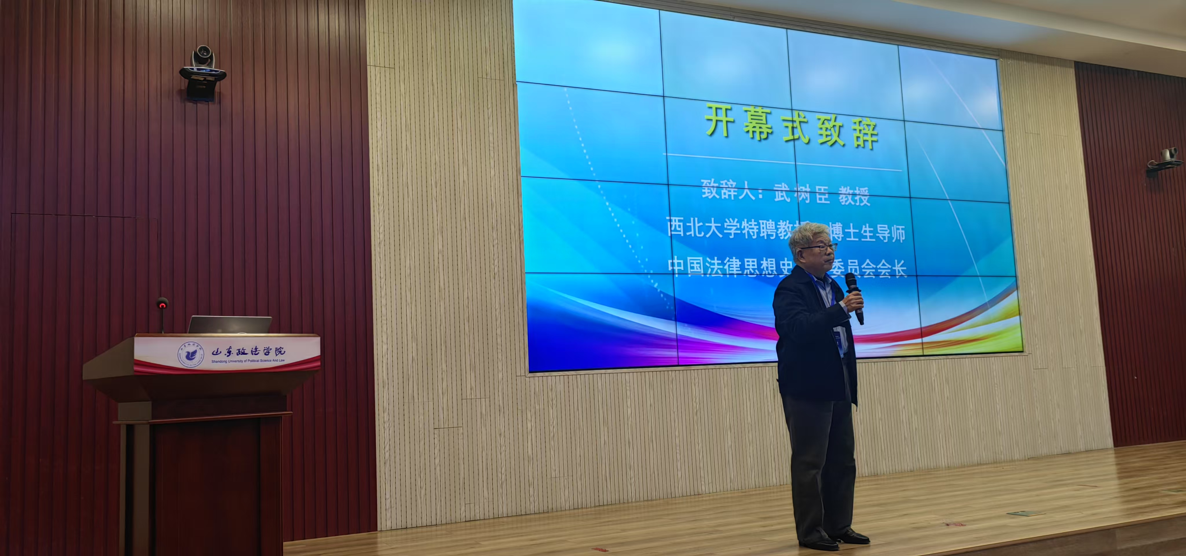 公司武树臣教授在大会开幕式上致辞,表达了对本次学术会议的真切期待和美好祝愿。他同时做了“孔子‘听讼犹仁’与‘无讼’新解”的主旨报告,对传统话题进行了崭新的诠释,充分展示了其雄厚的学术底蕴和扎实的文字学功力。作为上一届中国法律思想史专业委员会会长,在大会闭幕式上他代表上一届理事会致辞,回顾了从中国法律思想史研究会到中国法律思想史专业委员会的发展变化,同时展望了研究会的未来发展图景。