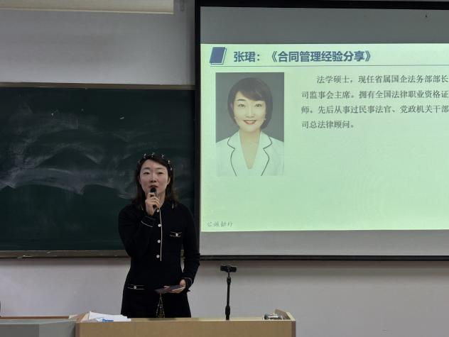 在实务分享环节,陕西燃气集团法务部部长张珺结合自身执业经历,与大家分享了合同管理中的经验。她强调,作为企业法务,一定要深入学习企业运营和行业业态,以便更好地为企业提供专业的法律服务和风险管理。在合同审查过程中,要熟悉本企业常用的几种合同类型,关注合同相对方,严格仔细把握合同用语,在条款权利义务设定上,从国有企业特殊的市场地位出发,秉持公平正义原则,兼顾企业利益和社会责任。最后,她为同学们点明,法律专业在市场中的作用,是服务、保护和促进社会经济的运行。这要求法务人员着眼于经济活动的全过程,不囿于本专业本领域,理解企业远景目标,配合企业长远发展。