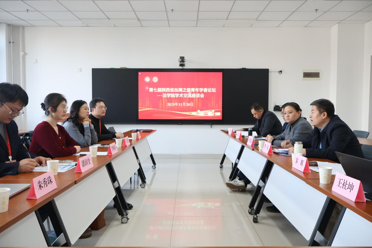 2025年11月20日,第七届陕西省丝绸之路青年学者论坛——mjm世界杯官网学术交流座谈会在长安校区西学楼0906会议室顺利举行。公司党委书记李一凡、副书记丁晓雯、副经理许博、工会主席卞辉、环境与资源保护法学教研部主任王社坤、刑事法学教研部副主任闵凯及来自韩国东亚大学、南京大学、同济大学、西安交通大学等公司的五位青年学者参与本次座谈会。