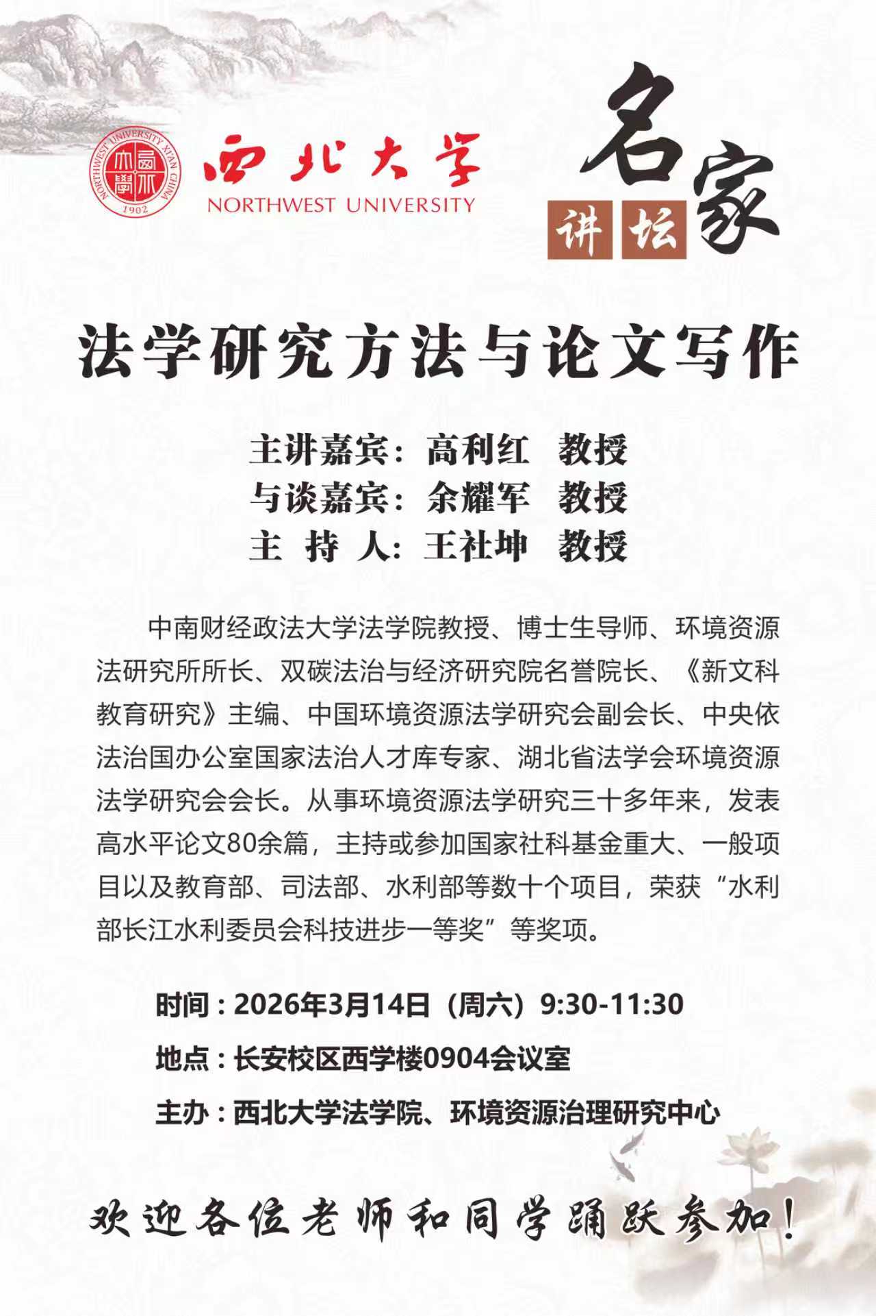 名家讲坛 | 高利红:法学研究方法与论文写作