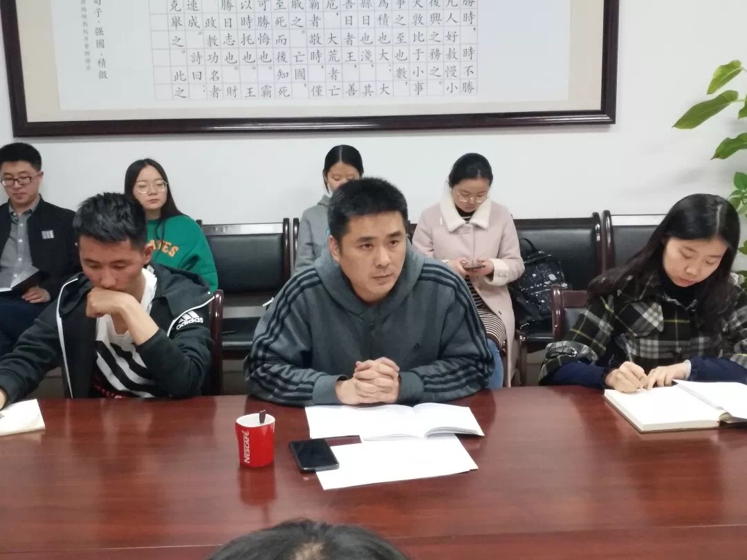 张邓斓老师向参会人员传达了共青团美加墨世界杯官网委员会2019年总体思路和工作要点,强调要扎实开展“青年大学习”行动,筑牢青年思想根基;加强实践育人环节,搭建青年成长平台;聚焦基层深化改革,夯实“三基工程”,提升共青团组织力。