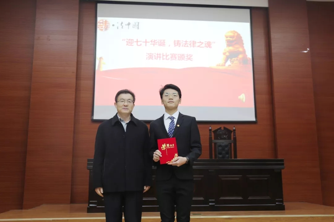 陕西省法学会党组书记、副会长杨建军为演讲比赛获奖员工颁奖