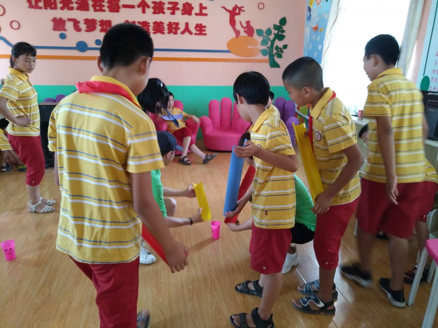 首先,我们的队长让孩子找一件能代表他们的一件物品,来让他们认识自己,接着,我们的成员从“灋”这个字向孩子们讲起法律的古义与獬豸的故事,向孩子们讲述“法”的渊源,并在孩子们的思想中树立起法律公正与不偏不倚的形象。接着,我们向孩子们介绍了春秋战国时期著名法家代表商鞅的事迹,让孩子们了解法律是公正而不偏私的,从而使其认识到尊法、守法的重要性。