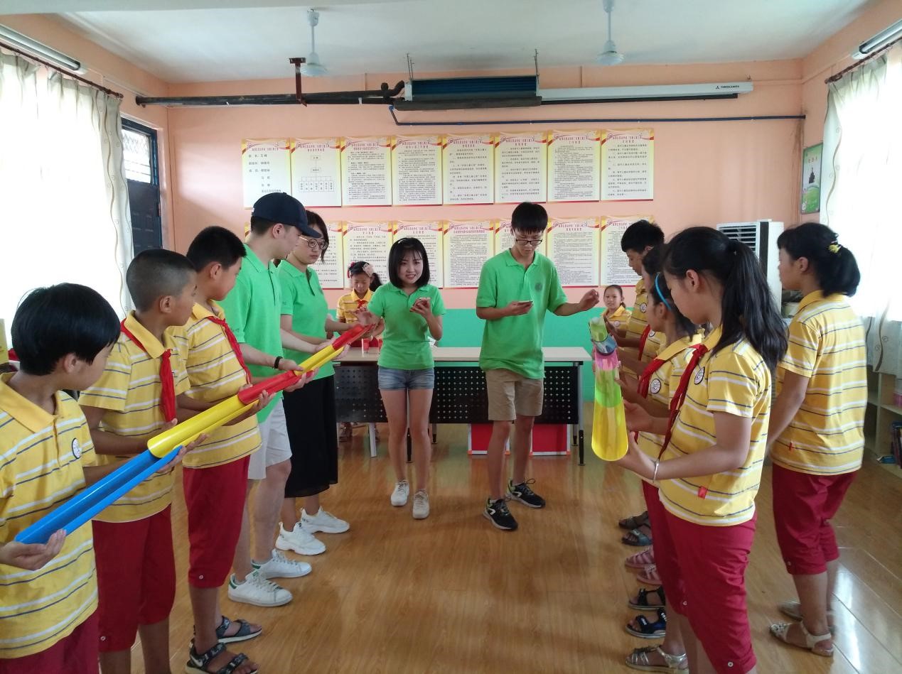 在亲切地同孩子们讲述完法律的基础知识后,我们便和孩子们玩起了精心准备的游戏——你左我右反方向和齐心协力来接球。在这两个游戏中,孩子们的天真与活泼表露出来,刺激的尖叫声与热烈的欢呼声不绝于耳。孩子们的热情在这一幕幕的欢乐的游戏场面中迸发而出,让我们感受到了孩子们的童真与活力。我们的成员也融入孩子们中,同他们一起玩耍,感受着他们的热情。