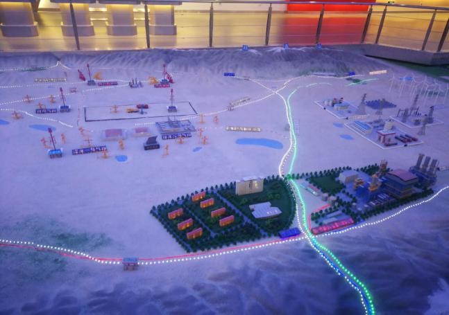 任何灿烂辉煌背后一定都有着一代又一代前辈们不断地积累锤炼。所谓“雄关漫道真如铁,而今迈步从头越。”实践团进入格尔木炼油厂,厂区开阔,油厂、加工厂鳞次栉比,安置不差分毫,成棋子状排布,横贯八方的输油输气管道好似血脉,径连着整个柴达木盆地,整体望去,就像一块宝珠镶嵌于祁连昆仑两大山脉之间,好不壮观。