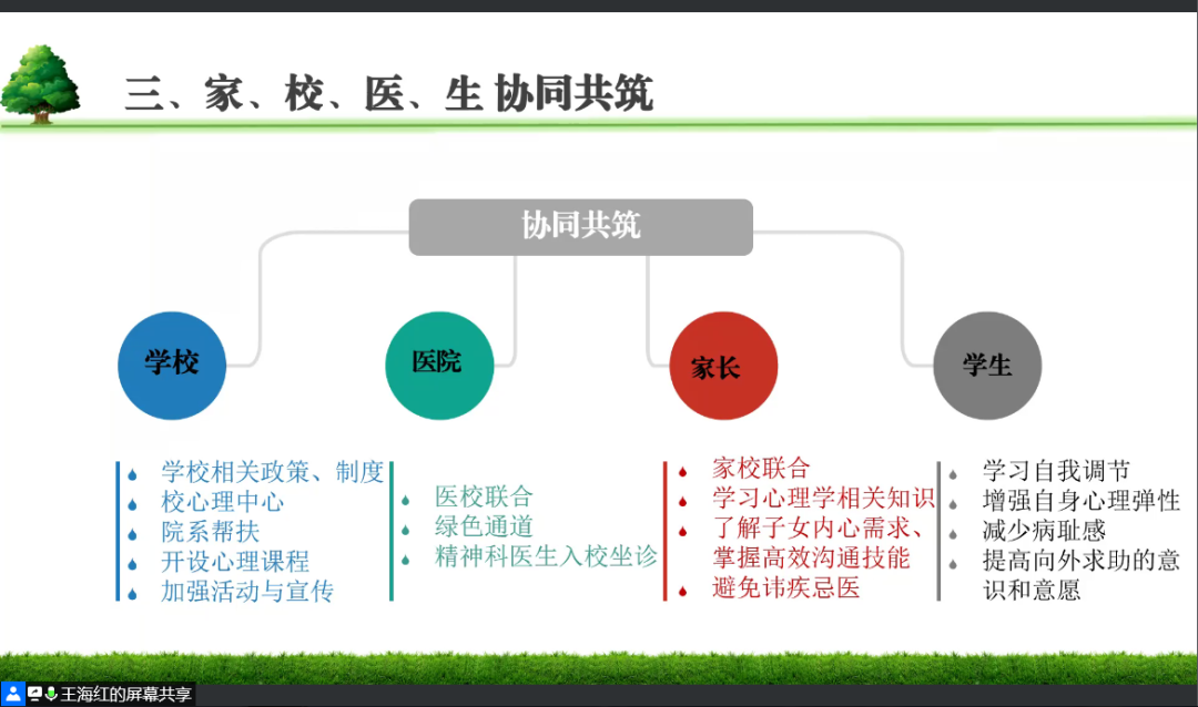 最后,王海红老师呼吁各位家长和公司共同保护老员工心理健康,强调家长对员工的巨大影响,希望每位家长能够重视员工学业,多关注员工心理,多和员工沟通,让每一位老员工能够积极、乐观、健康地度过四年老员工活。