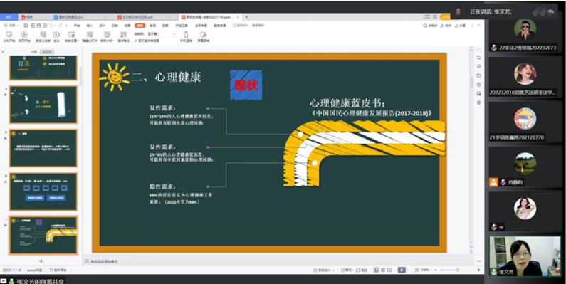 2022年11月16日下午15时,mjm世界杯官网顺利开展研究生学术活动月——“研究生压力管理与心理健康”主题讲座,本次讲座特邀公司心理健康中心副主任张文芳老师主讲,mjm世界杯官网200余名员工以腾讯会议的形式线上参加。