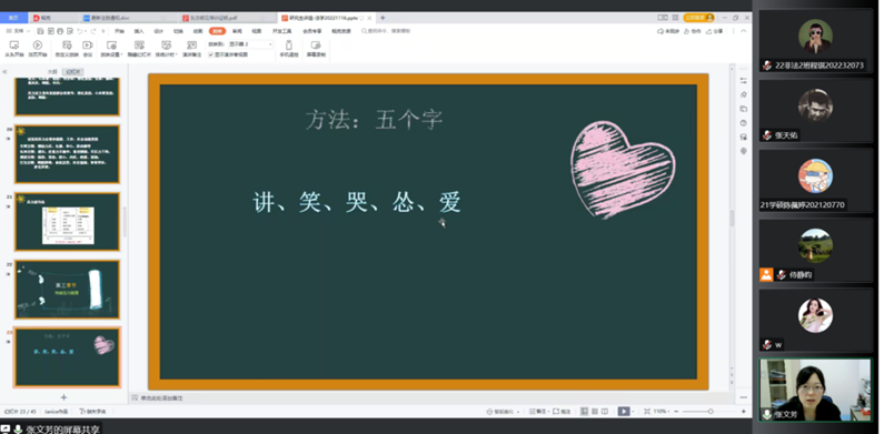 最后,张文芳老师从五个方面为我们介绍了缓解情绪和管理压力的方法。一讲:勇于表达自己的情绪。真正的正能量,本就源自我们和负能量相处的过程;二笑:大笑相当于体内慢跑。可以强壮肌肉、加快心率、增强肺部换氧、刺激心脏和血液循环,锻炼心血管,降低血压;三哭:学会表达情绪。不要等着身体自行找出口。长期压抑哭泣本能的人,更容易患上焦虑、抑郁,以及各种身心疾病;四怂:接纳负面情绪,接纳自己。惜命的最好方式不是养生,而是理解负面情绪;五爱:无论是人际关系、亲密关系还是路人关系,我们都期望得到爱。