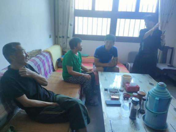 (团队成员在李百社先生家中进行调解)