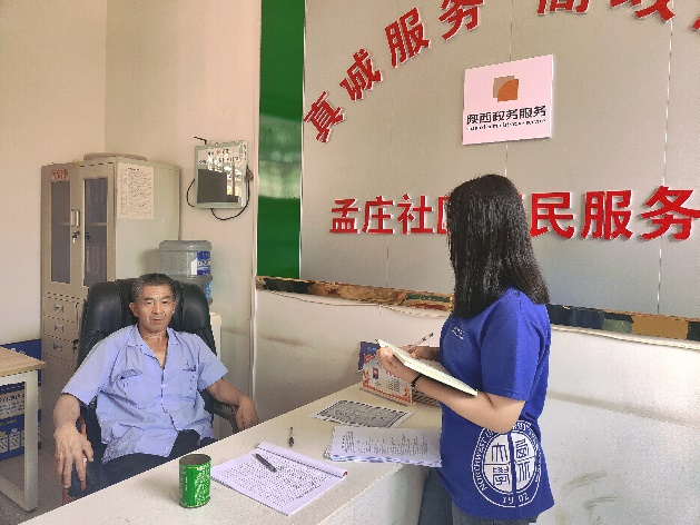 8月17日上午,团队成员首先来到孟庄村村支部,和村干部王武军、李百录开展座谈,两位村干部给团队成员详细介绍了村庄的主要情况和存在的法律侵权问题。最终知悉:孟庄村现有22个小组,1100户人家,村中常住人口3412人,以种植桃子、苹果等果园经济作物作为主要经济收入。之后的两天,团队成员走进孟庄村各家各户,深入了解村民的情况。