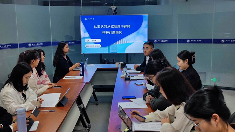 10月27日晚,学术活动月研究生汇报活动的第四场于西学楼北0906会议室举办,民商法学教研部刘桢老师担任点评嘉宾。八位同学所汇报的内容涉民法基础理论、著作权、商标权等,刘桢老师秉承审慎的学术态度,对同学们的汇报作出专业点评,同时对于研究生在论文写作过程中的具体方法和学术规范作出了指导,参与汇报的同学通过与刘桢老师的深入交流和学习,在学术素养提升方面收获颇丰。