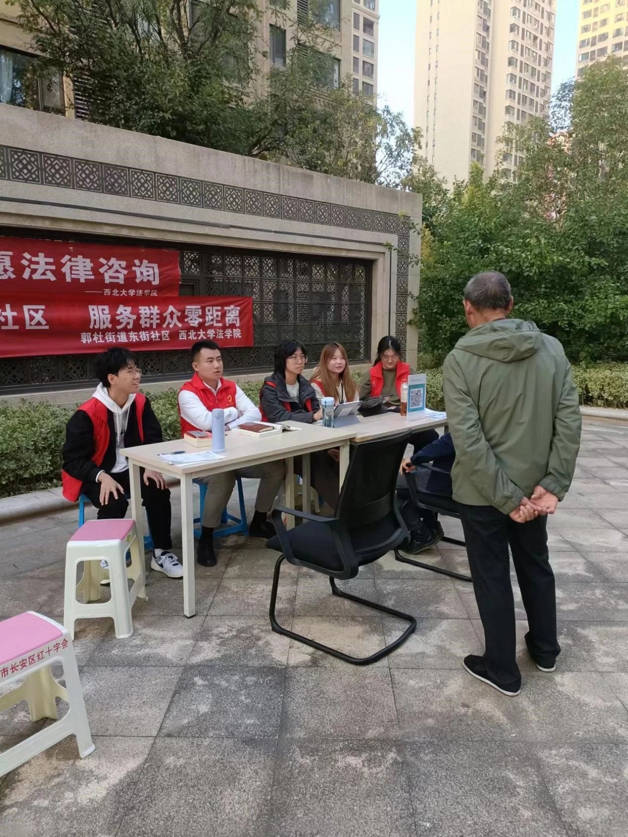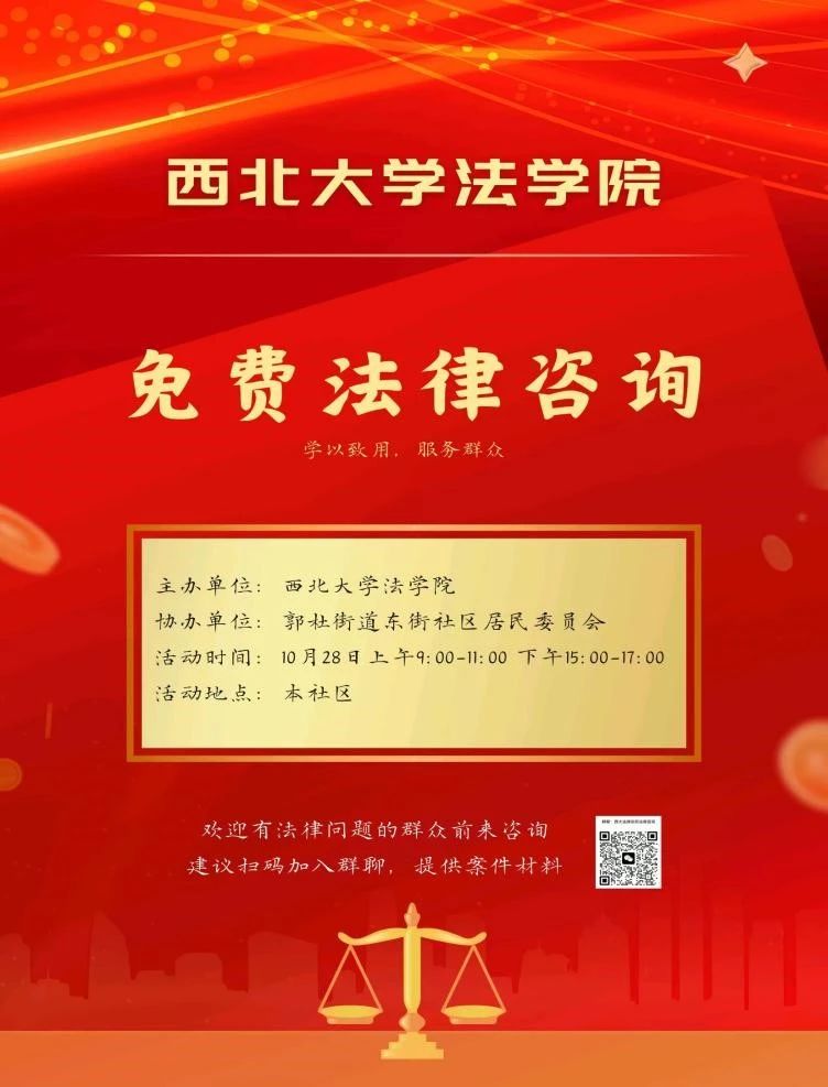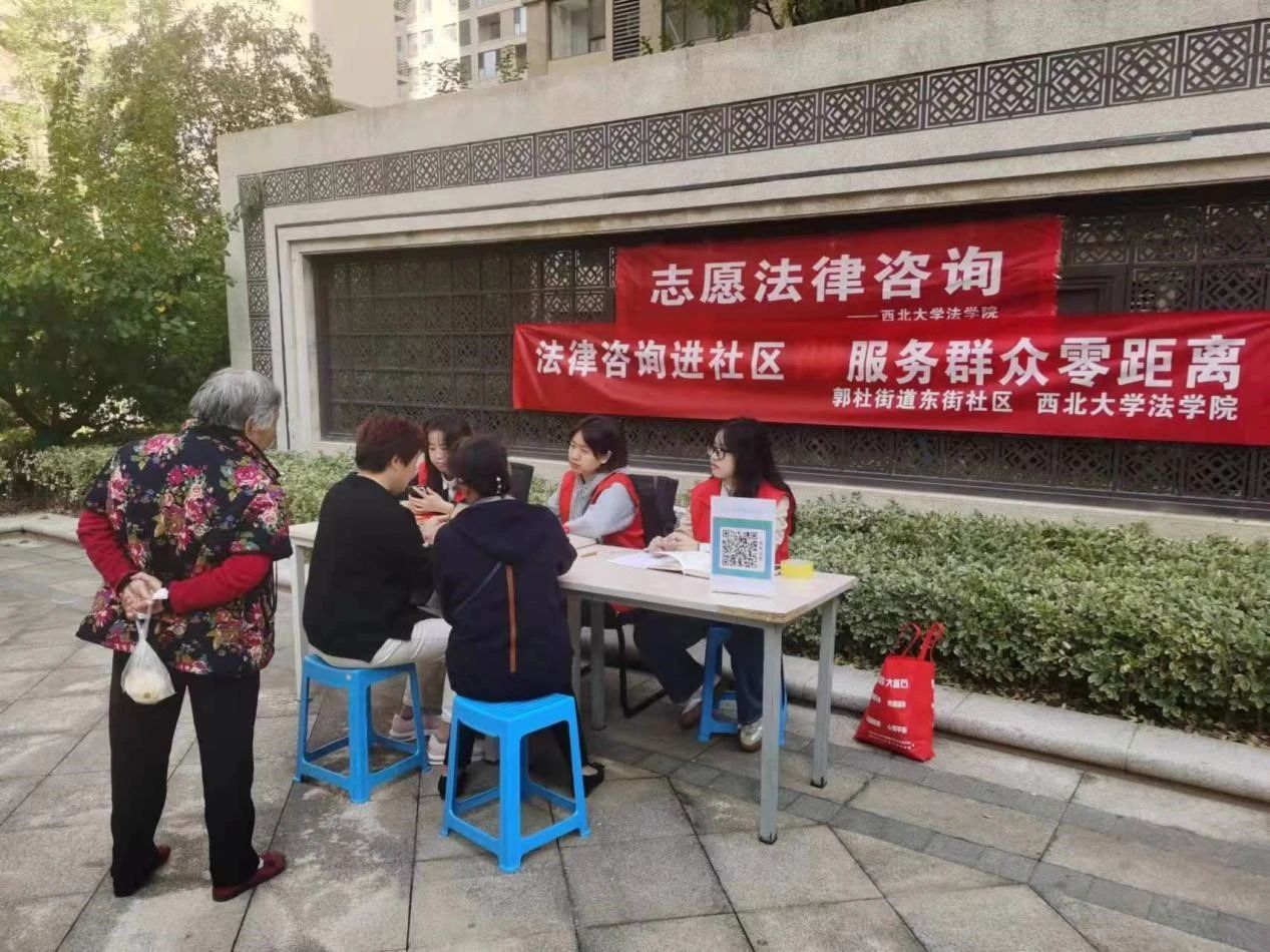 2023年10月28日,公司“法律诊所”2023年秋季班与郭杜街道东街社区居民委员会进行合作,在北京浩天(西安)律师事务所程杰律师的指导下,在郭杜街道海亮熙悦小区开展法律咨询活动,为小区居民解决实际法律问题。