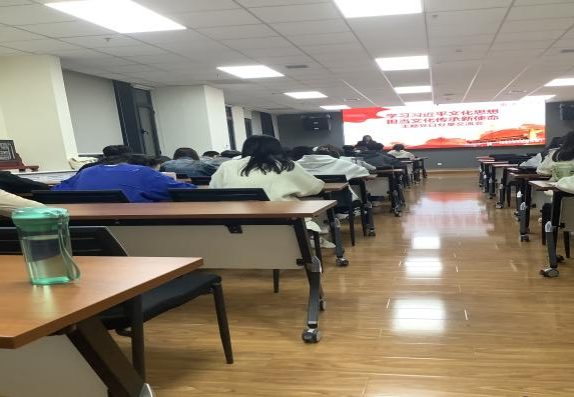 李宇浩同学、赵雨芊同学,对习近平文化思想的重大意义做了介绍,指出习近平文化思想的诞生标志着我们党对中国特色社会主义文化建设规律的认识达到了新高度,表明我们党的历史自信、文化自信达到了新高度,并在我国社会主义文化建设中展现出了强大伟力,为做好新时代新征程宣传思想文化工作、担负起新的文化使命提供了强大思想武器和科学行动指南。