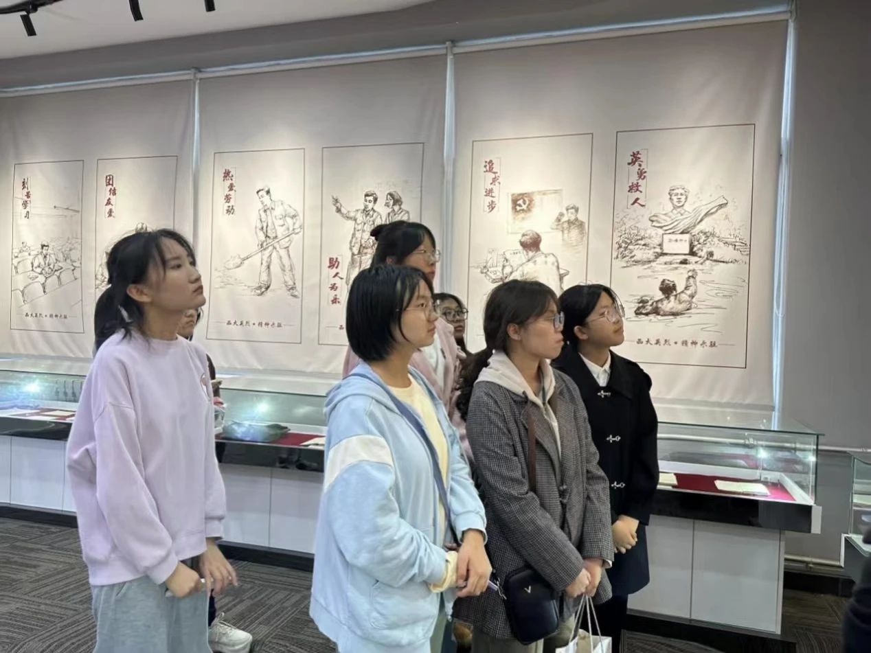 到达纪念馆之后,由峰青社讲解员带领大家进行参观,并向同学们介绍了郭峰烈士的生平事迹。在参观过程中,同学们了解到了郭峰在校期间积极进取、乐于助人、主动参加义务劳动、组织员工社团,但不幸在高冠瀑布因抢救一名落水女工而牺牲。他舍己为人,将人生的光辉聚焦为生命永不磨灭的闪耀,以自身实际行动诠释了校训“公诚勤朴”的深刻内涵。