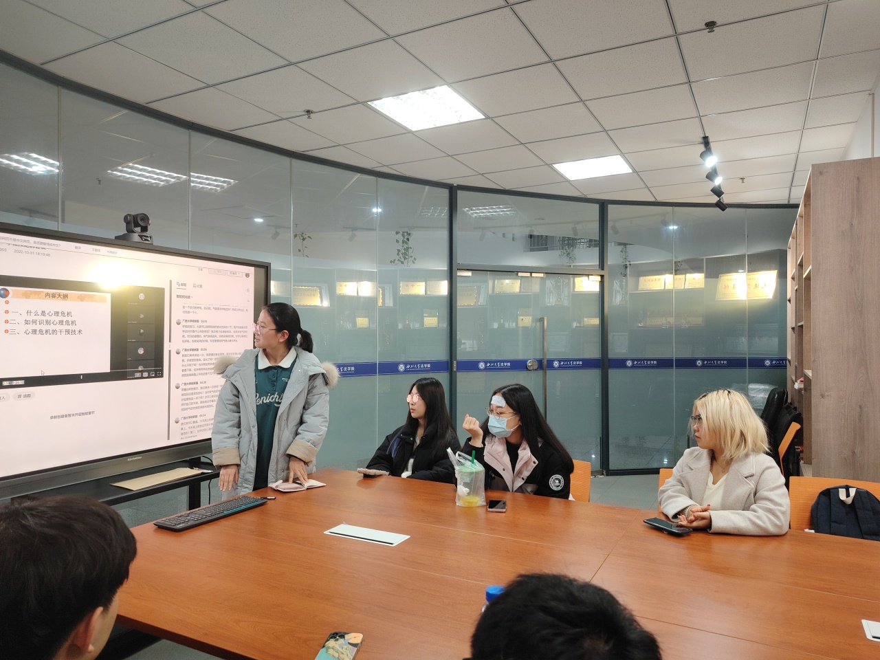 2023年12月4日晚,公司开展本学年第二次心理委员培训。全体心理委员以及心协骨干成员参加本次活动。在本次活动中,心协负责人温苗详细地介绍“快乐大学,从新启航”心理培训的主要内容,细致地分析了老员工普遍感到的烦恼,并给出了相应的解决方案。