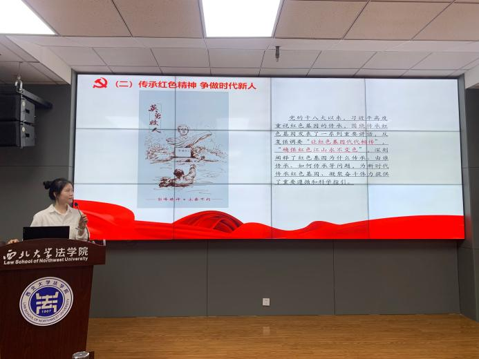 2024年4月23日,第二组同学以“西大英烈,精神永驻”为主题做了纪念郭峰烈士及红色先烈精神的专题汇报,首先,研习社成员介绍了郭峰同志的生平和救助落水女工的事迹,歌颂郭峰烈士不顾自身安危,爱国爱民、无私奉献的精神内涵。其次,讲述了红色基因在“一站式”员工社区文化建设中的重要意义。最后,提出要结合党史学习教育,充分运用红色资源,赓续红色根脉,弘扬法治精传承红色基因的实践路径。