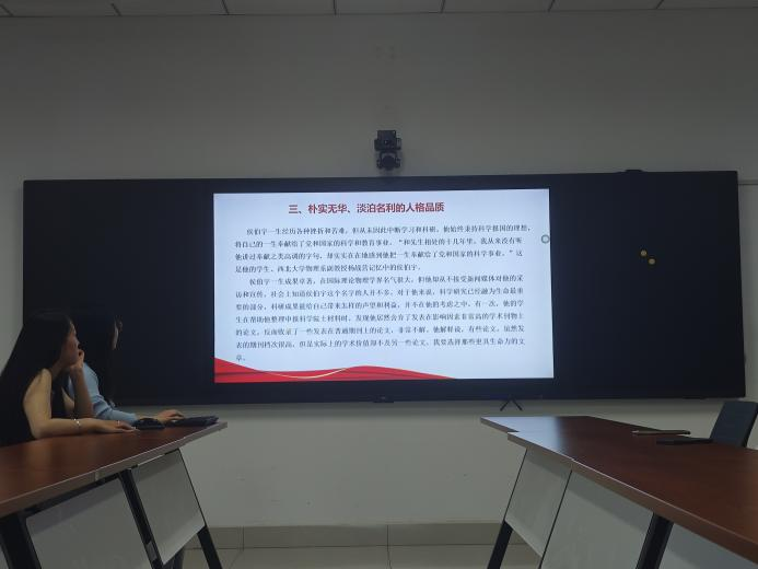 2024年4月25日,第三组同学以“把一切献给教育科学事业的时代先锋”为主题,宣讲了侯伯宇先生的先进事迹。活动伊始,宣讲同学宣讲了侯伯宇先生求学、学术研究、入党、工作等方面的经历,让与会同学深入了解侯伯宇先生。随后,宣讲同学高度赞扬了侯伯宇先生爱党爱国、矢志不渝的奉献精神,朴实无华、淡泊名利的人格品质和精心育人、甘为人梯的师德风范。最后,强调了侯伯宇先生在教育领域作出的巨大贡献。侯伯宇先生创建了“侯氏理论”的世界数学物理界代表人物,作为新中国首批博士生导师,国家级有突出贡献专家,先前任公司现代物理研究所教授。侯伯宇先生将职业变成一生的事业,把教书育人当作人生最大的乐趣,把攀登科学高峰当作事业的最大追求,他始终坚持在教学一线教书育人,使科学的薪火世代相传。
