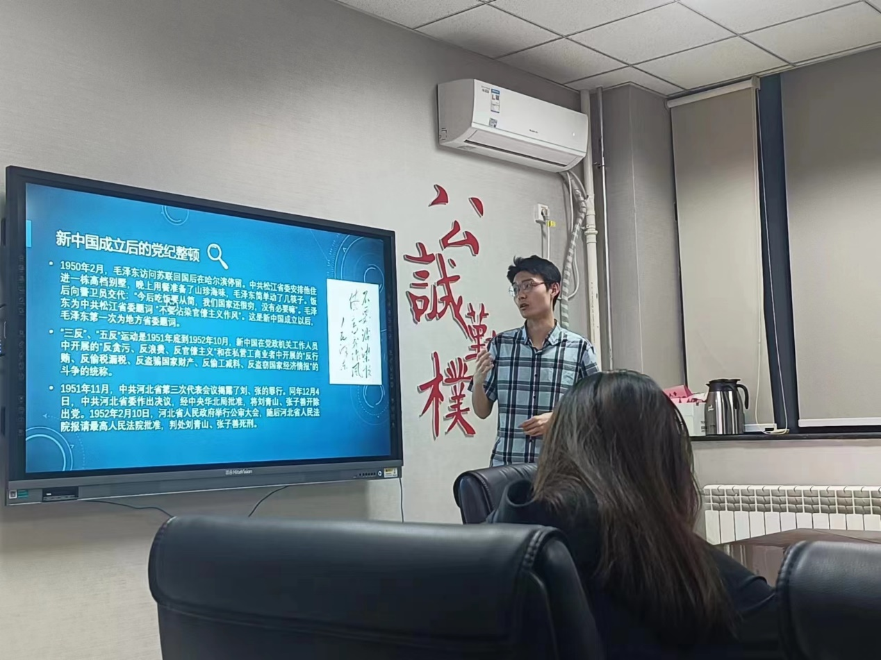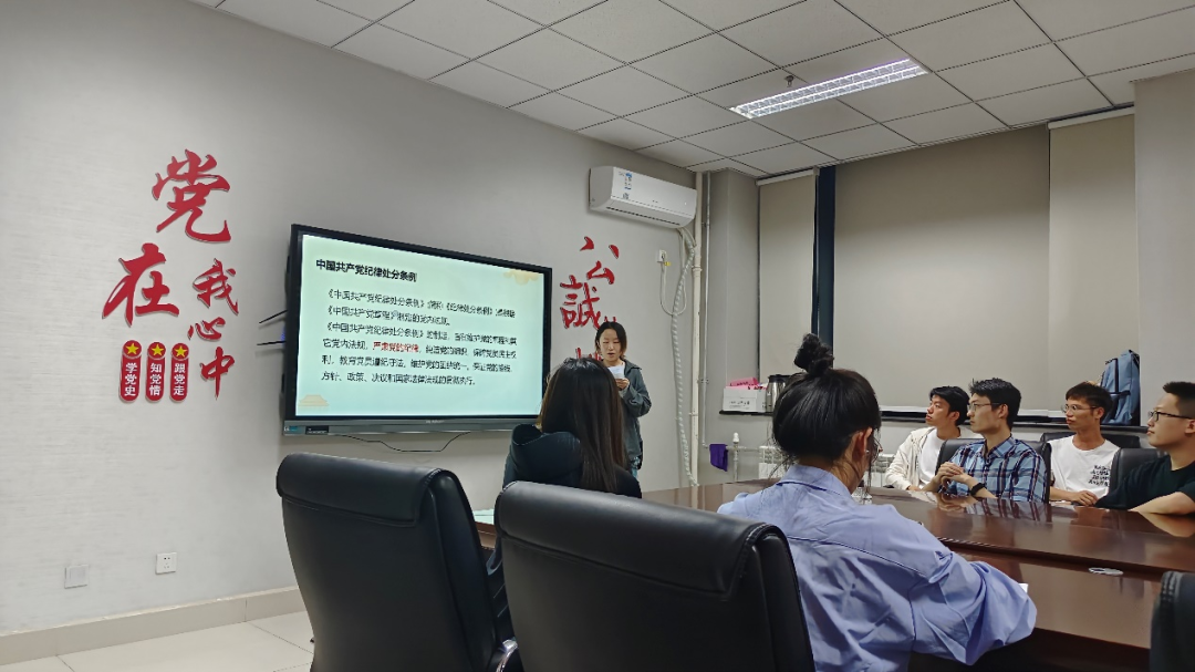 为全面学习贯彻中共中央办公厅《关于在全党开展党纪学习教育的通知》,有效提升党员党纪意识,切实解决个别党员对党规党纪不上心、不了解、不掌握等问题,帮助党员深入理解党规党纪,强化责任担当意识,更好的服务群众,4月25日,公司党委组织公司本科生党支部与马克思主义公司红桅杆思政理论学习社团党支部开展“学党纪、知党纪、守党纪”联合学习教育活动,共20余名党员参与了本次学习。