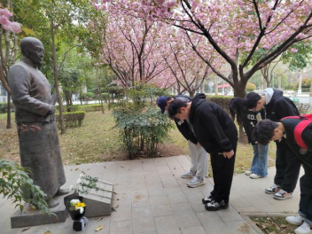 上午9时,同学们齐聚校内先辈雕像前,凝望着先辈们庄严的雕像,历史的一幕幕在眼前重现,让同学们更加真切地感受到西大先辈们的英勇事迹,革命精神在心中深深扎根。随后,同学们整齐列队,手持白菊,面向纪念碑肃立默哀,表达深切悼念。默哀结束后将白菊依次献于雕像基座前,并细心擦拭雕像上的尘土。春阳下,先辈的面容更显庄重,仿佛无声诉说着历史的厚重。最后,全体同学整衣肃立,向雕像深深鞠躬,深切地表达了对西大先辈们矢志不渝的精神的崇高敬意。