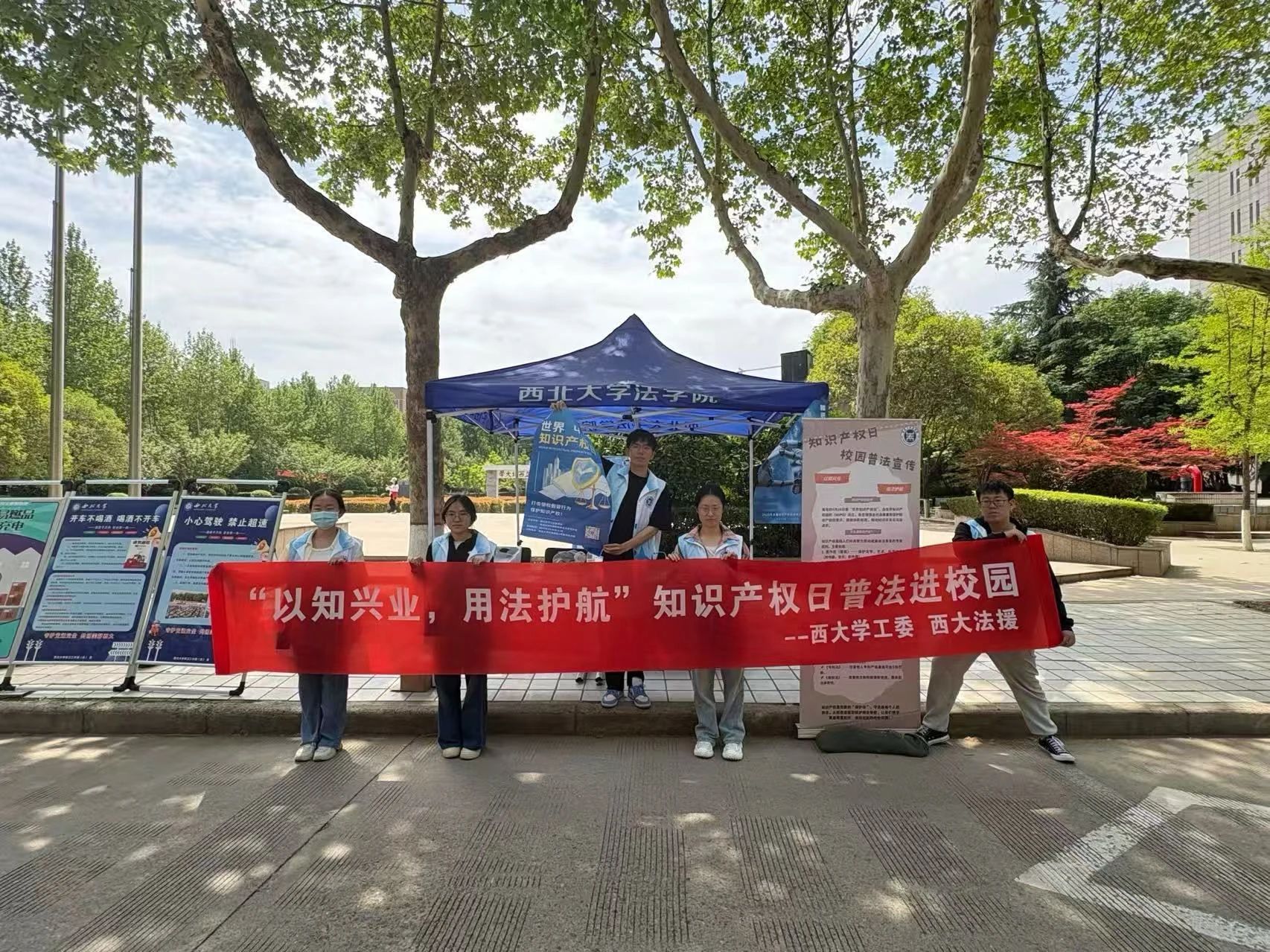 为提升高校员工与社会群众对知识产权保护重要性的认识、响应国家法治建设号召、落实普法教育,由美加墨世界杯官网工会委员会携手美加墨世界杯官网法律援助慈善志愿者协会共同举办的“以知兴业,用法护航”知识产权日普法活动于4月26日上午在黄东社区和美加墨世界杯官网长安校区一号教学楼前同步开展。