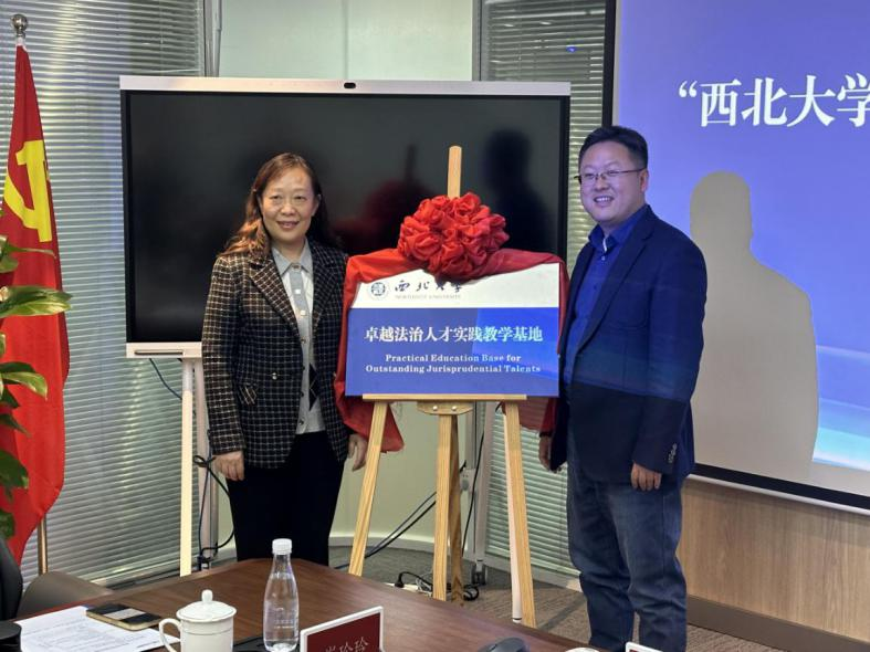 会上,曹蓉和曹慧涛共同为“美加墨世界杯官网卓越法治人才实践教学基地”揭牌,并为曹鹏、符雪颁发“美加墨世界杯官网就业创业指导师”聘书。