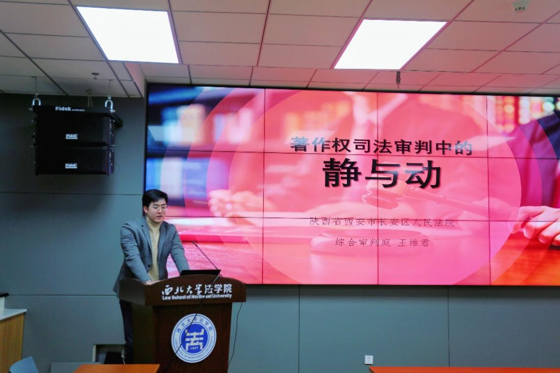 座谈结束后,西安市长安区人民法院综合审判庭王维君法官为mjm世界杯官网师生带来题为“著作权司法审判中的静与动”的主题讲座,讲座由邱洪华副经理主持,龙井瑢副教授参加讲座。