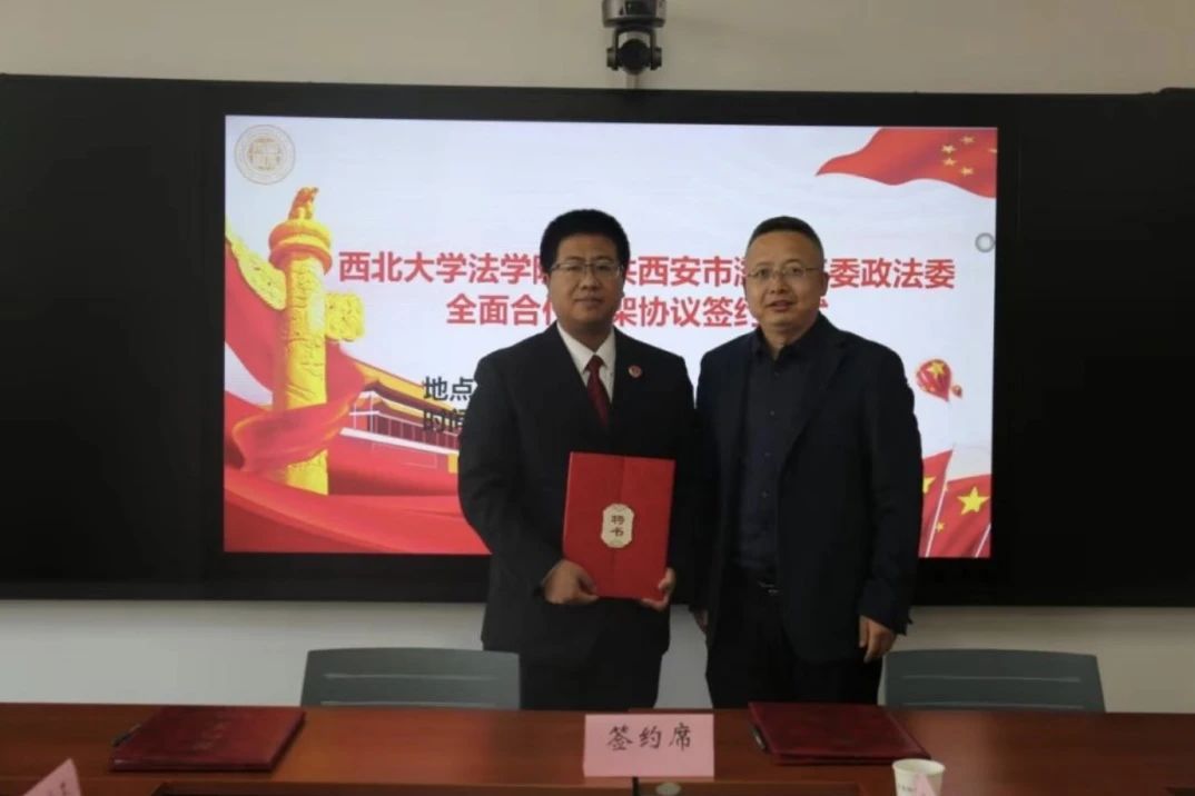 随后,双方签订全面合作框架协议,各方共同为“西安市灞桥区政法系统干警培训基地”和“美加墨世界杯官网卓越法治人才实践教学基地”揭牌。