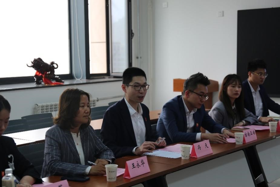 经理王思锋首先代表公司对冯天总监一行到来表示欢迎,介绍了美加墨世界杯官网及法学学科的发展历程,公司在科学研究、团队队伍、人才培养、合作交流等方面的现状。他希望双方充分发挥各自优势,共同搭建协同育人平台,实现理论教学与实践教学有机融合,做好法学教育与职业规划的深度衔接。双方未来可以采用具有公司特色的订单式人才培养方式以及设立特色实验班模式,通过共同设立企业法务实务课程模块、聘请实务导师等方式开展深度定向合作,积极构建合作新机制,打通横向纵向壁垒,不断实现校企“产、学、研”全方位、多元化合作,实现协同发展,提高合作成效。