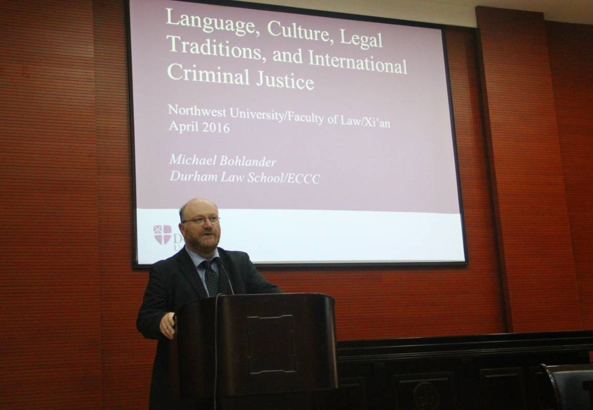 4月14日下午,英国杜伦大学的Michael Bohlander教授受公司邀请,在模拟法庭作了题为“Language, Culture, Legal Traditions and International Criminal Justice”的精彩讲座,讲座由公司副经理曾加教授主持,余高能副教授、王钢副教授点评。公司师生共计200余人聆听了此次讲座。